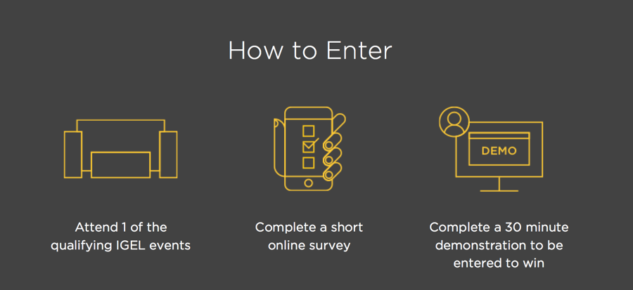 Before you jump in, define the specific behavior you need to change. Ask yourself what are the objectives and which behaviors are currently impeding them? The main problem IGEL had before was that by the time users left the event, they’d cooled off. This is deadly for conversion; when you’re not activated, you’re not motivated. No wonder people weren’t stepping over hurdles to log back in and sign up for a demo.